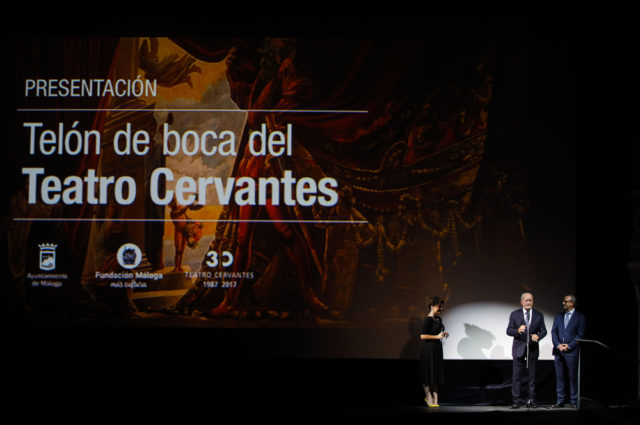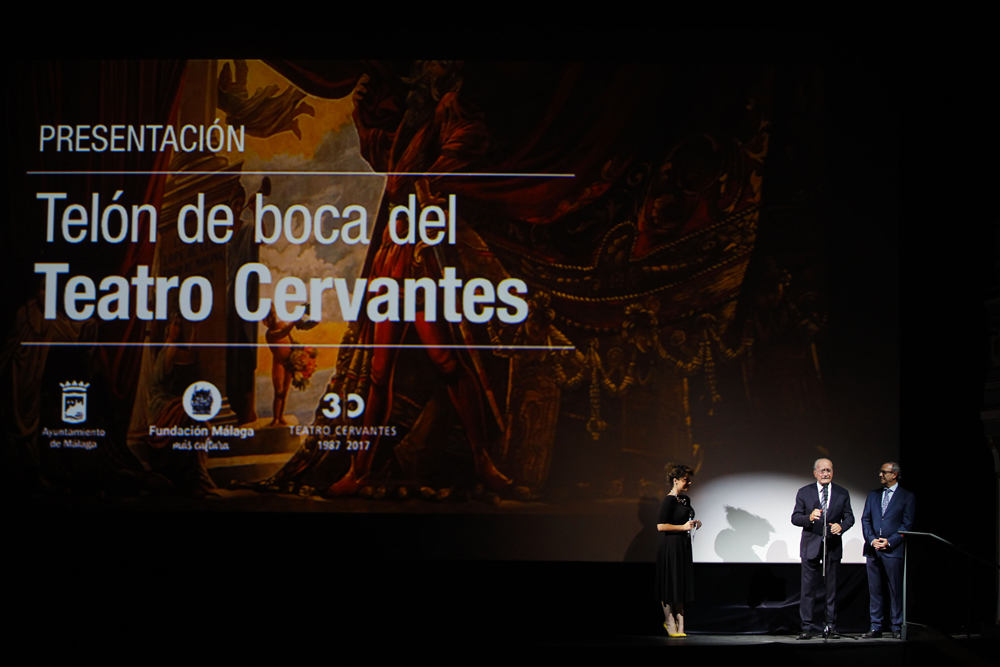 La Fundación Málaga y el Ayuntamiento de Málaga, a través del Teatro Cervantes, han abordado conjuntamente la restauración del telón de boca que pintó Bernardo Ferrándiz en 1870. Este telón de boca es uno de los más conseguidos de los realizados en la España del XIX. Para ello, el autor desarrolló una propuesta iconográfica que deshiciera la ruptura entre escena y público al introducir una abertura imaginaria en el centro, por la que asoman los personajes que se representan. Destaca en el lado derecho la figura de Mefistófeles, en el que el pintor se autorretrató.