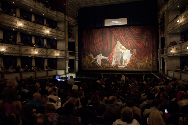 Fotogalería: así luce restaurado el telón de boca de Ferrándiz del Teatro Cervantes