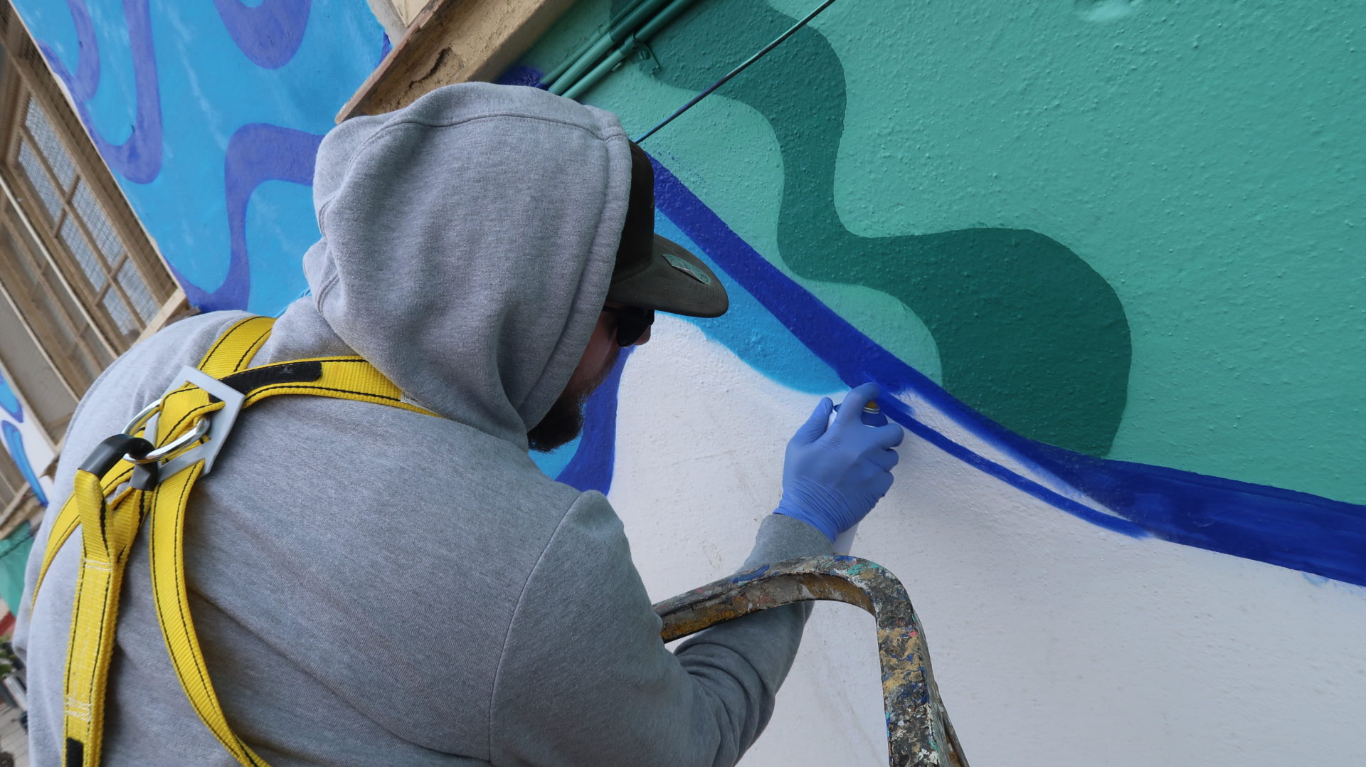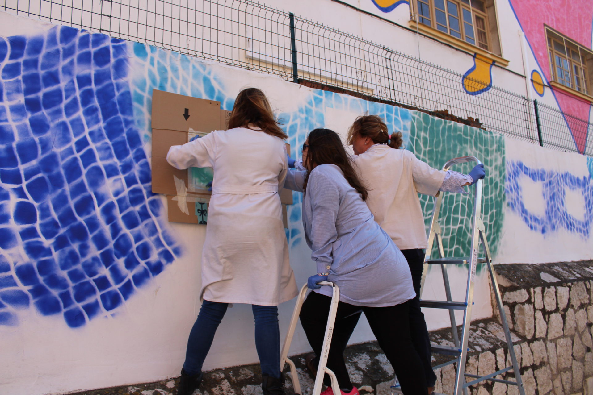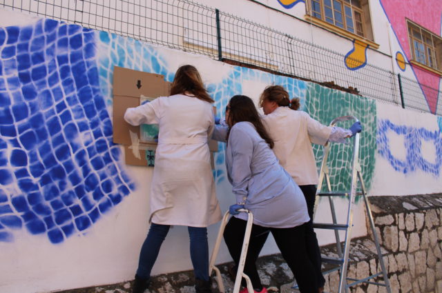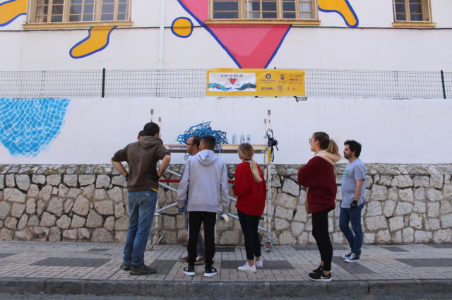 La primera un gran mural realizado por Francisco García, en el que el mar es protagonista, coronado por un gran corazón en el centro.La segunda ha sido realizada por alumnos, alumnas, vecinos y vecinas y profesorado del colegio, en el que a partir de una serie de imágenes han representado composiciones en torno a elementos como la educación o la pesca. Todo esto acompañado de una gran red de pesca que recoge y cose, a modo de hilo conductor, el imaginario de identidades culturales y sociales de El Palo.