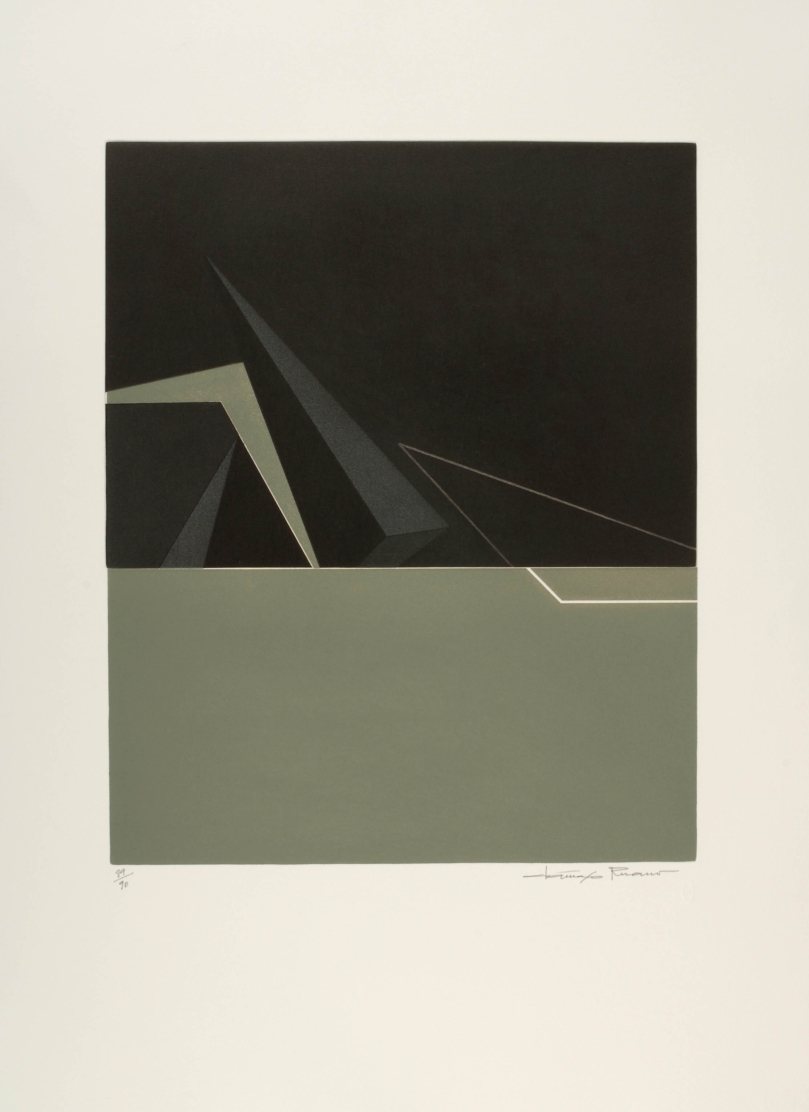 The artist from Málaga Dámaso Ruano opened the series of engravings from the “Colección Málaga Arte Gráfico Contemporáneo”, created under the protection of Fundación Málaga and Calcografía Nacional of the museum Real Academia de Bellas Artes de San Fernando. Each year the series will present an unpublished work by a creator from the province or a resident of the province. Ruano points out that he has titled his work «Genesis» for «what it has of possible birth of forms», having used the triangle, «which in painting has always been left aside».